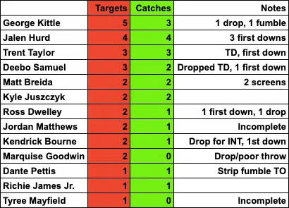 49ers Practice Report: Garoppolo unlucky with first interception of camp, Hurd stands out | KSAN-FM
