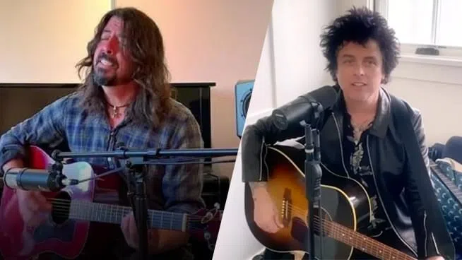 In support of Feeding America and First Responders Children’s Foundation, Dave Grohl and Billie Joe Armstrong took to their living rooms to join a concert hosted by Sir Elton John last night, Sunday 3/29 on Fox.