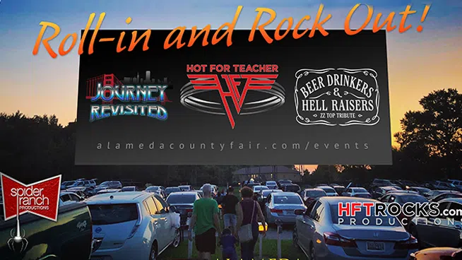 A “Roll-in and Rock Out” live drive-in concert will be held Friday, June 12th and Saturday, June 13th, 2020 at the Alameda County Fairgrounds at 4501 Pleasanton Avenue in Pleasanton, California.