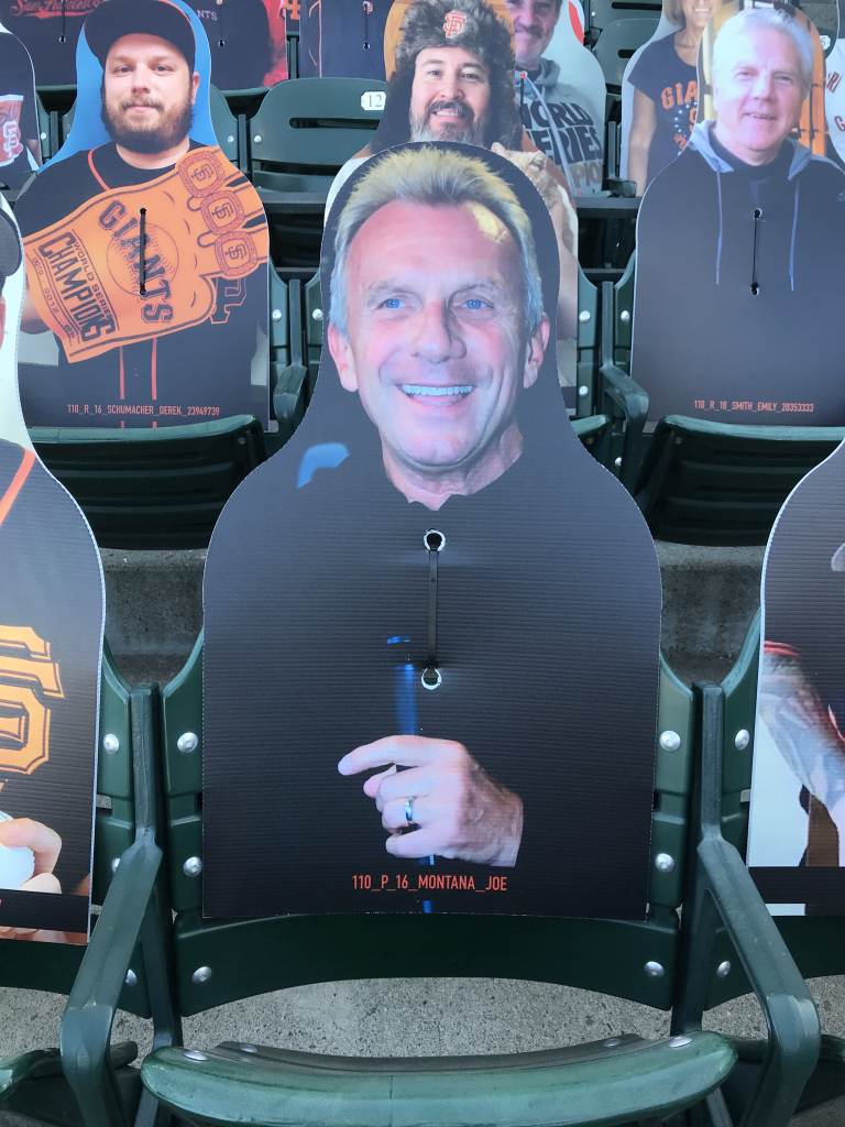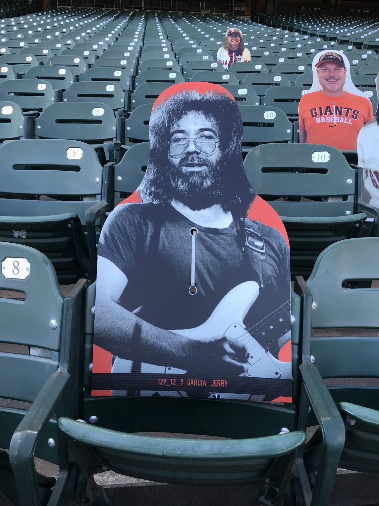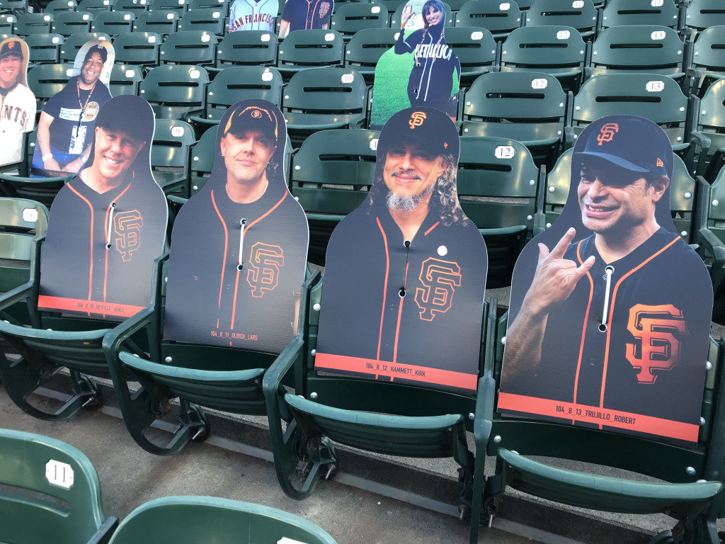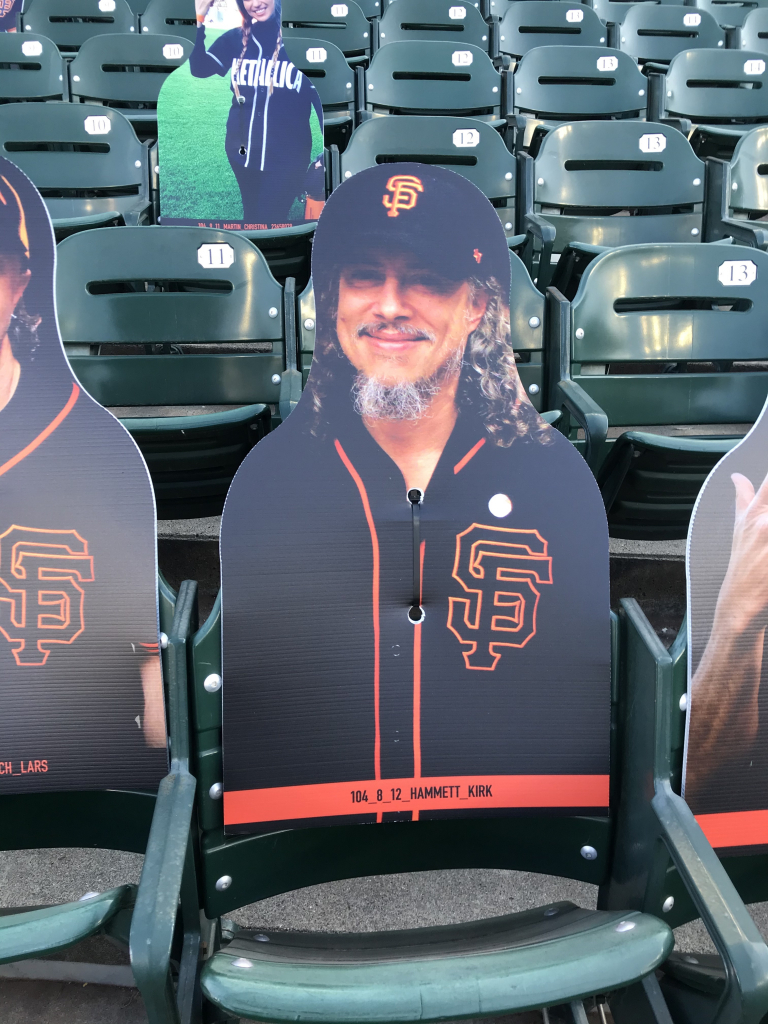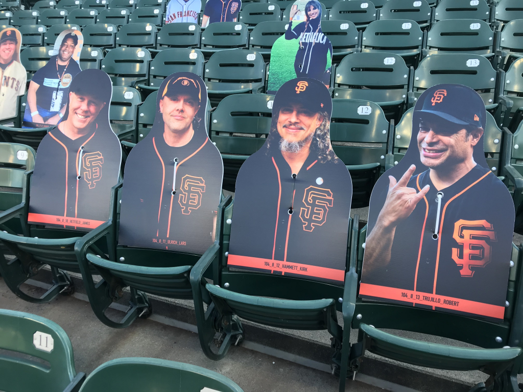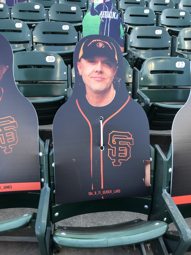 You may think your eyes are playing tricks on you when scanning the crowd at a San Francisco Giants game this season, but they aren’t. The Giants have been filling the empty seats with cutouts of musicians, athletes, local radio hosts (The BONE Jocks are all there), fans and anyone who wants to buy a seat! While fans can’t actually attend, the Giants found a way to fill the stadium in a different way, and it’s been fun checking out the crowd! In attendance this year is Metallica, Carlos Santana, Jerry Garcia, Huey Lewis, Frank Sinatra, Dean Martin, George Kittle, Bill Graham, Tony Bennett, Jimmy G, Joe Montana, Ronnie Lott, Chris Isaak, Stan Lee, E-40, Jerry Rice, Lamont, Tonelli, Chasta, Baby Huey, Zakk, Dayna, Bruce Bochy, Roger Craig, Steve Young, Matt Cain, Guy Fieri, Ali Wong, Bobby Bonds, Barry Bonds and many more!