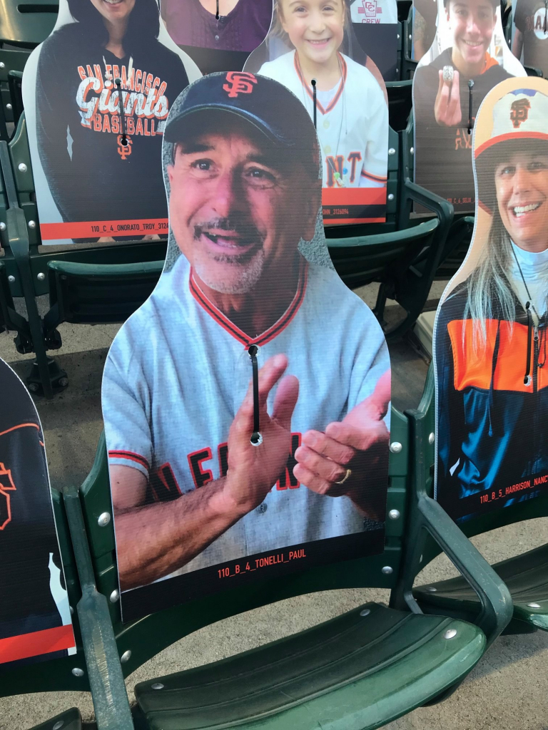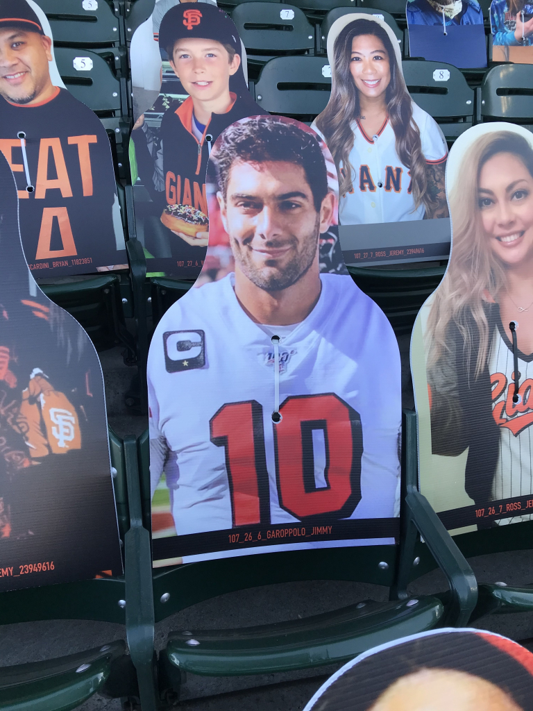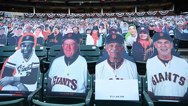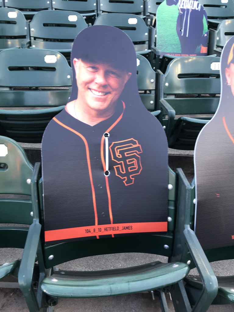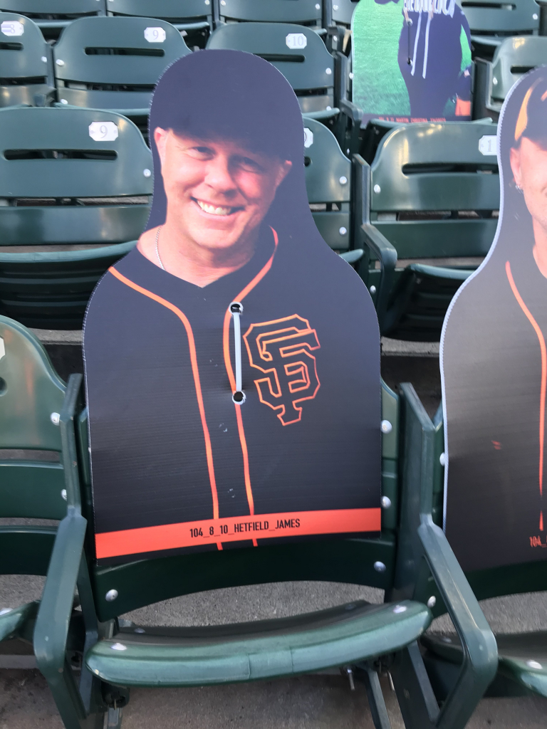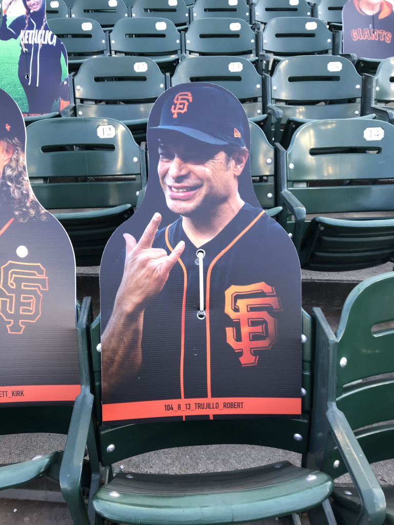 You may think your eyes are playing tricks on you when scanning the crowd at a San Francisco Giants game this season, but they aren’t. The Giants have been filling the empty seats with cutouts of musicians, athletes, local radio hosts (The BONE Jocks are all there), fans and anyone who wants to buy a seat! While fans can’t actually attend, the Giants found a way to fill the stadium in a different way, and it’s been fun checking out the crowd! In attendance this year is Metallica, Carlos Santana, Jerry Garcia, Huey Lewis, Frank Sinatra, Dean Martin, George Kittle, Bill Graham, Tony Bennett, Jimmy G, Joe Montana, Ronnie Lott, Chris Isaak, Stan Lee, E-40, Jerry Rice, Lamont, Tonelli, Chasta, Baby Huey, Zakk, Dayna, Bruce Bochy, Roger Craig, Steve Young, Matt Cain, Guy Fieri, Ali Wong, Bobby Bonds, Barry Bonds and many more!