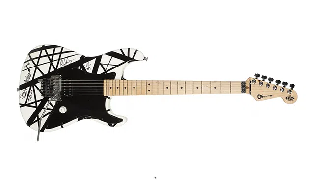 Eddie Van Halen’s Stage-Played White Custom Charvel | Credit: Julien’s Auctions