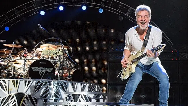 CHULA VISTA, CA – SEPTEMBER 30: Guitarist Eddie Van Halen of Van Halen performs on stage at Sleep Train Amphitheatre on September 30, 2015 in Chula Vista, California. (Photo by Daniel Knighton/Getty Images).