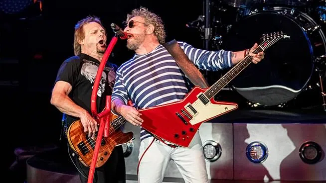 CLARKSTON, MICHIGAN – MAY 22: Michael Anthony (L) and Sammy Hagar of Sammy Hagar And The Circle perform at DTE Energy Music Theater on May 22, 2019 in Clarkston, Michigan. (Photo by Scott Legato/Getty Images).