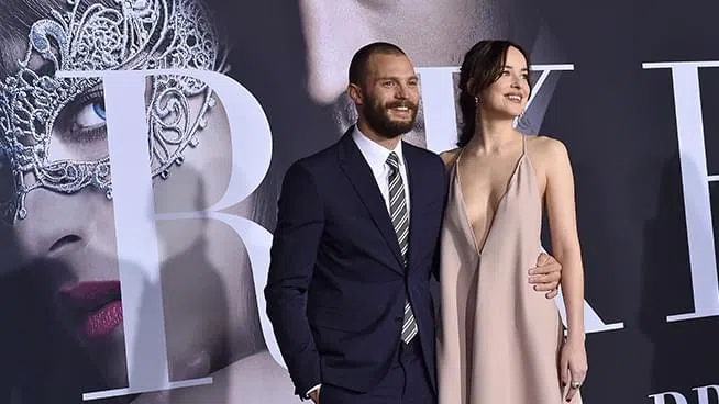 LOS ANGELES, CA – FEBRUARY 02: Actors Jamie Dornan and Dakota Johnson arrive at the premiere of Universal Pictures’ ‘Fifty Shades Darker’ at The Theatre at Ace Hotel on February 2, 2017 in Los Angeles, California. (Photo by Axelle/Bauer-Griffin/FilmMagic).