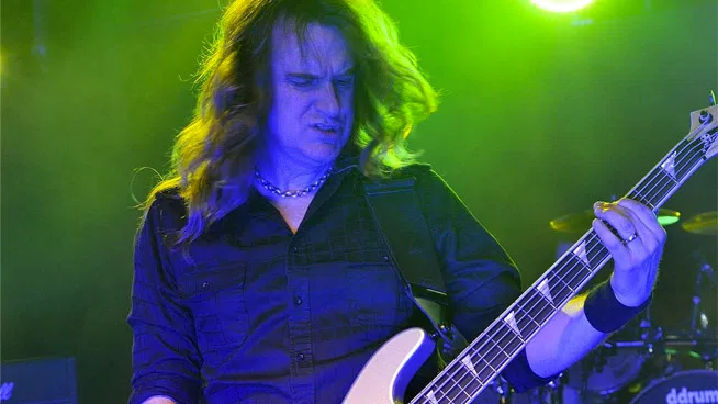 DENVER, CO – FEBRUARY 28: David Warren Ellefson performing with ‘Megadeth’ at the Fillmore Auditorium in Denver, Colorado on February 28, 2012. (Photo by Larry Hulst/Michael Ochs Archives/Getty Images)