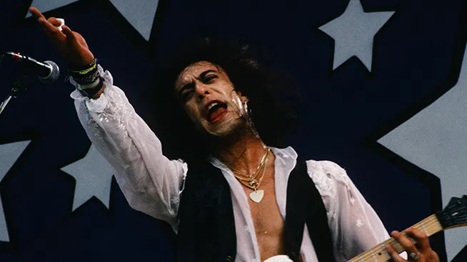 (MANDATORY CREDIT Koh Hasebe/Shinko Music/Getty Images) Cinderella, live, Moscow Music Peace Festival 1989 at Luzhniki Stadium, Moscow, USSR, 12th and 13th August, 1989. Jeff LaBar (guitar). (Photo by Koh Hasebe/Shinko Music/Getty Images).