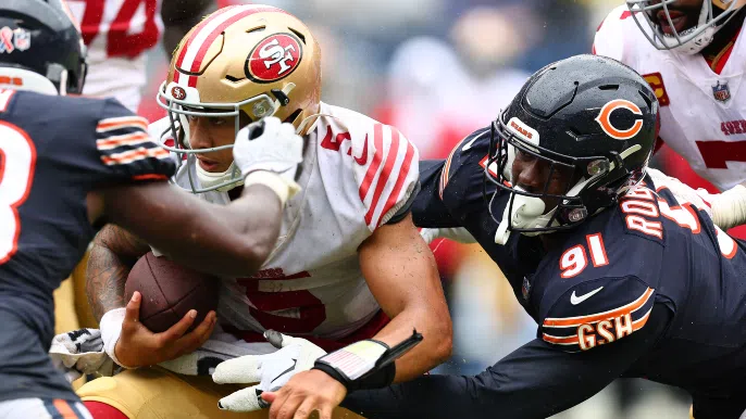 It’s true Lance didn’t hurt the Bears through the air, but the rain certainly had an affect on the 49ers’ ability in the pass game. Lance’s biggest mistakes in the pass game were taking two sacks, and a costly interception in the fourth quarter.