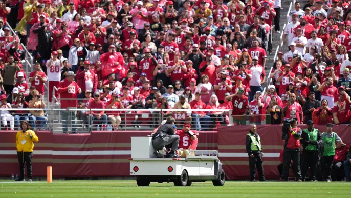 Lance was carted off the field in the first quarter after taking a hit on a run up the middle. Lance ran three times up the middle in the first quarter, and did so many times in the Week 1 loss to the Chicago Bears. Here’s what Lance’s ankle looked like after the injury: