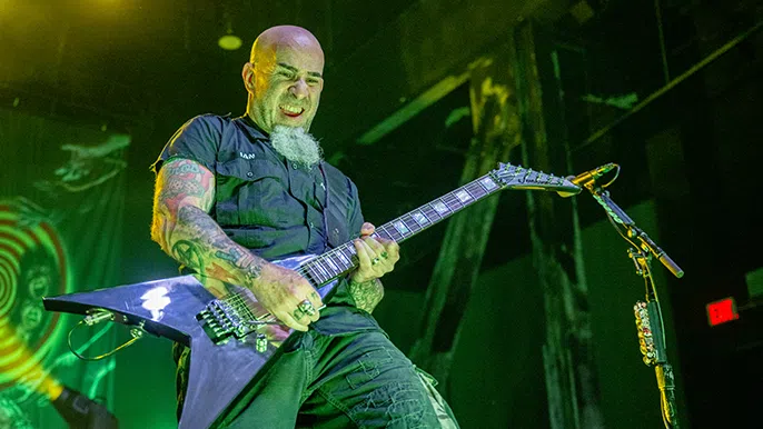Ian says of the Among the Living song, “It’s like a greatest hits in one song. It’s got so many different aspects. It’s got hardcore, it’s got rock, it’s got metal. That main riff is like an AC/DC riff, but then you’ve got a hardcore breakdown in the middle, you’ve got the down-picking verses. It’s fast, it’s mid-tempo, it’s slow. It’s got everything.”