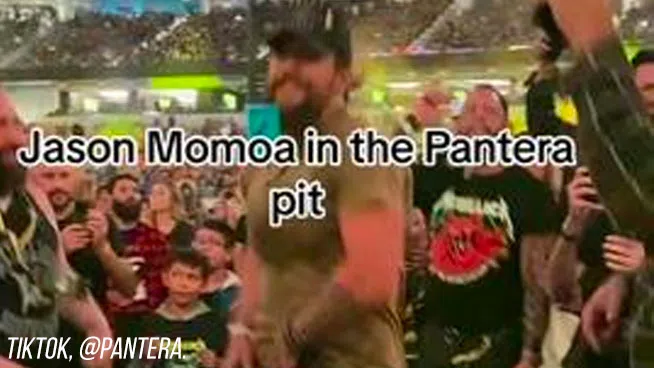 Jason Momoa was having the time of his life watching Pantera perform as one of the opening acts for Metallica on Friday, August 25, night at SoFi Stadium in Los Angeles.