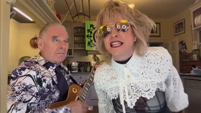 The married rockers cover Blink-182’s “Dammit”, with Toyah sporting aviator shades while Fripp rocks some eyeshadow.