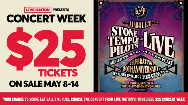 Live Nation Concert Week is back, May 8th – May 14th, and Live Nation is offering $25 all-in tickets to TONS of concerts! And to celebrate, we wanna hook you up with tickets to TWO BIG BONE shows! Just tune in Monday, May 6th – Friday, May 10th within the 8am, 11am, or 3pm hours. Be the 10th caller into the studio at 1-888-303-BONE and you’ll score two tickets to the Lamont & Tonelli Ball (August 16th at Toyota Pavilion at Concord) AND a pair of tickets to one of the Live Nation concerts listed below of your choice! Furnished by Live Nation. Get official rules here. Get tickets and details at LiveNation.com!