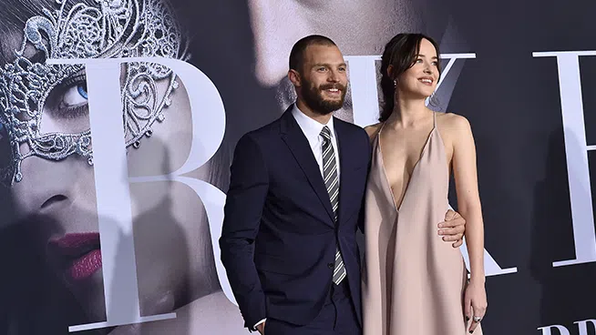 LOS ANGELES, CA – FEBRUARY 02: Actors Jamie Dornan and Dakota Johnson arrive at the premiere of Universal Pictures’ ‘Fifty Shades Darker’ at The Theatre at Ace Hotel on Februar...