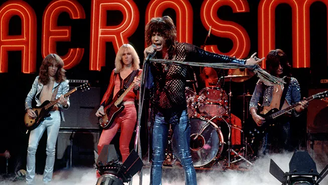 LOS ANGELES – NOVEMBER 24: Rock and roll band “Aerosmith” perform on the Midnight Special TV Show on November 24, 1978 in Los Angeles, California. L-R: Brad Whitford, Tom Hamilton, S...