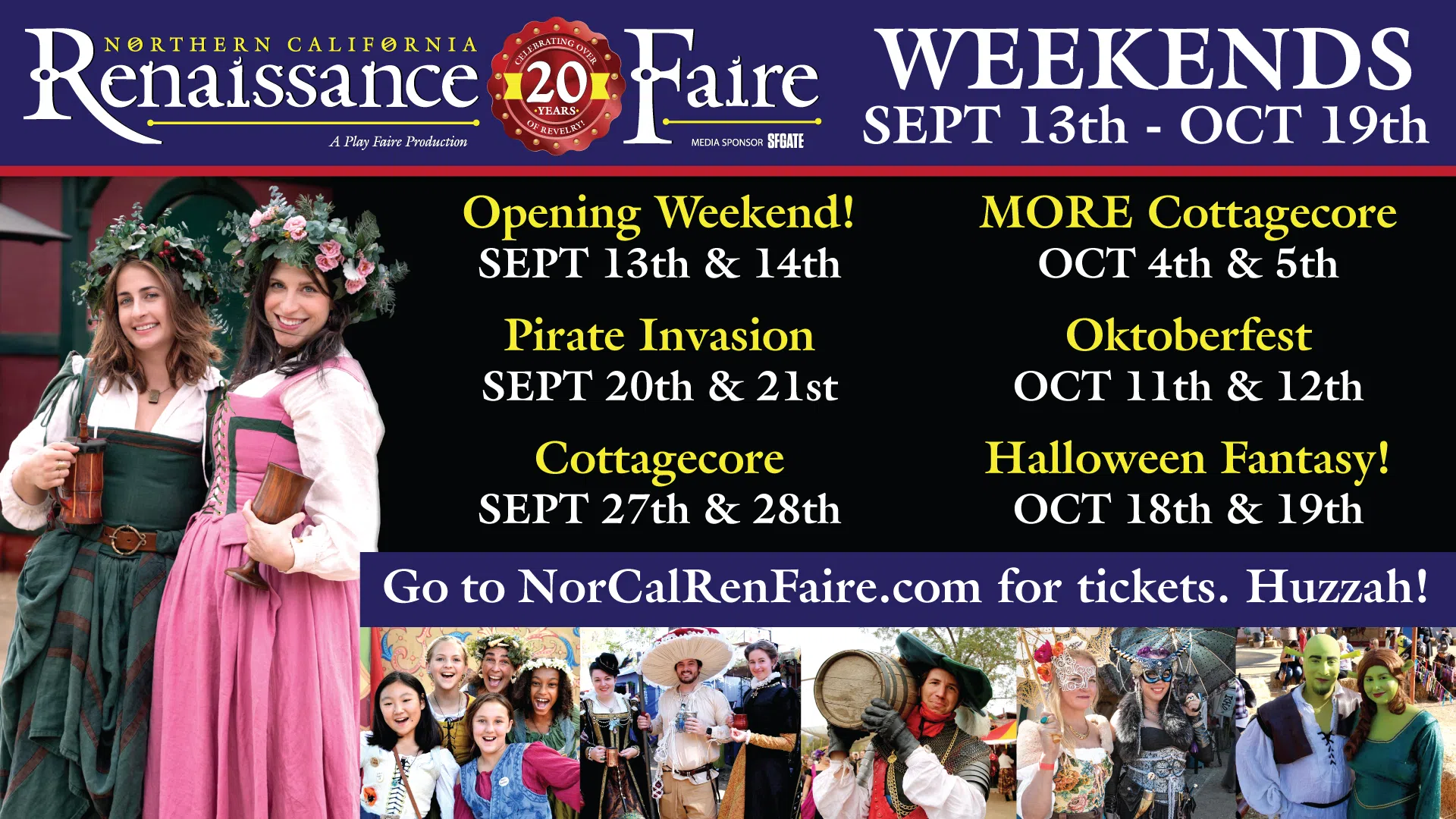 Enter for a chance to win four (4) tickets to the 2025 Northern California Renaissance Faire happening September 13th – October 19th, 2025, at Casa de Fruta in Hollister! One (1) entry per perso...