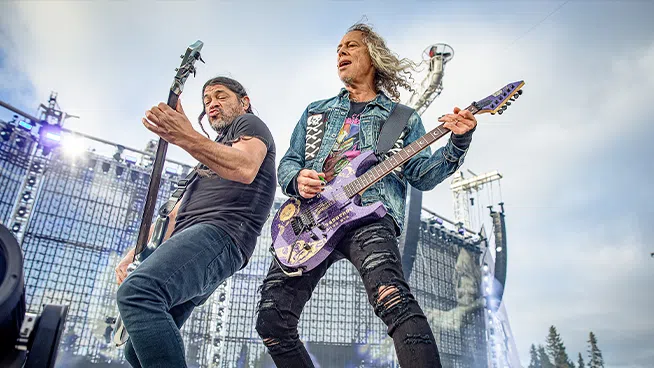 Robert Trujillo (L) and Kirk Hammett of Metallica performs at Gransen on July 13, 2019 in Trondheim, Norway. (Photo by Per Ole Hagen/Redferns) They say imitation is the biggest form of flattery. Well,...