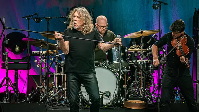 HALDEN, NORWAY – JULY 02: L-R) Robert Plant, Dave Smith and Seth Lakeman from The Sensational Space Shifters on stage at Fredriksten Festning on July 2, 2019 in Halden, Norway. (Photo by Per Ole...