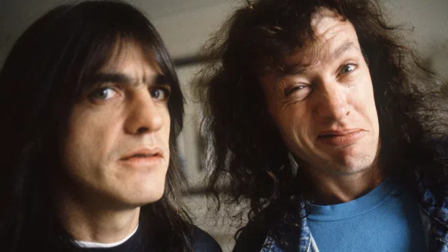 Angus Young and Malcolm Young of AC/DC, portrait, London, United Kingdom, 1995. (Photo by Martyn Goodacre/Getty Images). This Father's Day weekend we'll bring you Father's Day 4-Plays, all weekend lon...