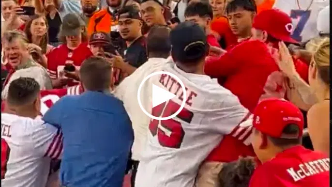 https://twitter.com/KNBR/status/1693100258124087782(Content warning: Video above contains violence)It might have been a preseason game, but some fans at Levi’s Stadium were taking things a littl...