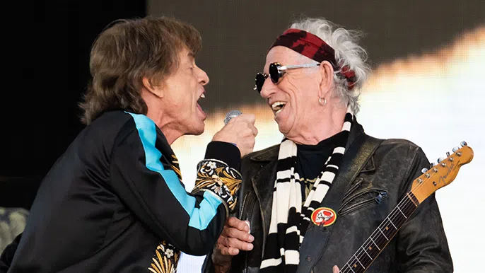 LONDON, ENGLAND – JULY 03: Mick Jagger and Keith Richards of The Rolling Stones perform at American Express present BST Hyde Park at Hyde Park on July 03, 2022 in London, England. (Photo by Sami...