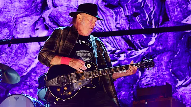 PITTSBURGH, PA – SEPTEMBER 16: Neil Young performs during 2017 Farm Aid on September 16, 2017 in Burgettstown, Pennsylvania. (Photo by Matt Kincaid/Getty Images).Spotify is removing Neil Young...