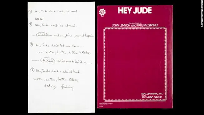 Paul McCartney’s handwritten ‘Hey Jude’ lyrics sell for $910,000