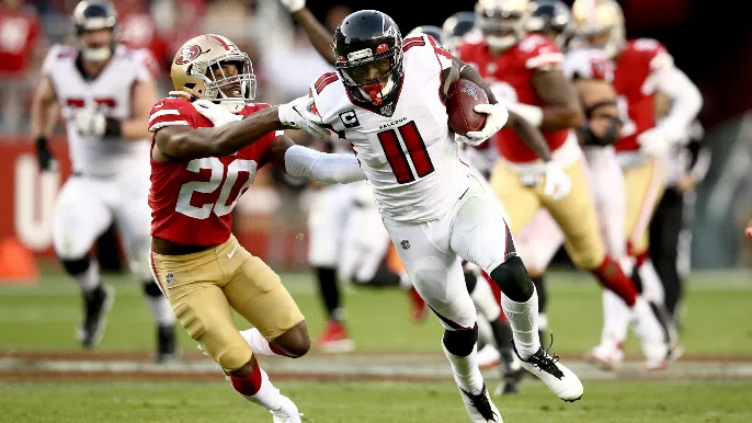 49ers fall apart against Falcons in final seconds, but clinch thanks to Rams’ failure