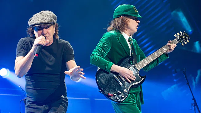 KANSAS CITY, MO – FEBRUARY 28: Singer Brian Johnson (L) and musician Angus Young of AC/DC performs at Sprint Center on February 28, 2016 in Kansas City, Missouri. (Photo by Jason Squires/WireIma...